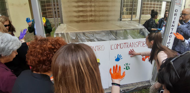 Si è svolto nel primo pomeriggio di venerdì il flashmob in occasione della giornata internazionale contro l’omotransfobia. Nel cortile della biblioteca comunale Clara Gallini alcuni giovani e i rappresentanti delle Istituzioni hanno testimoniato la vicinanza alle persone LGBT, minorenni o maggiorenni, “a difesa dei loro Diritti e contro il bullismo, il cyberbullismo e la violenza omotransfobica”.