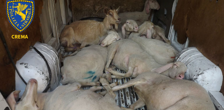 Gli agenti della polizia stradale hanno controllato il mezzo – un Renault Master – trovando nel vano un grosso telone che copriva il fondo. Vedendolo muoversi hanno sospettato il trasporto clandestino di persone, ma poi hanno notato due corna. Nel furgone erano stipate, con le zampe legate, 9 pecore e una capra.