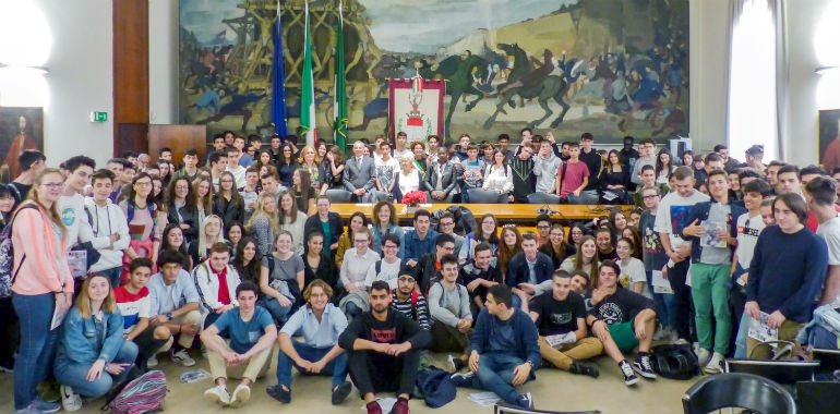 Benvenuti in Sala degli Ostaggi, che ci ricorda un episodio drammatico della nostra storia cittadina, ma che oggi è un luogo di democrazia e di libertà, in cui si prendono le decisioni più importanti che riguardano la nostra comunità. È la casa di tutti, la vostra casa.