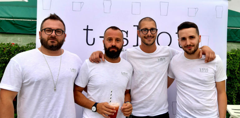 T-Shot. T di ‘t-shirt’ e Shot come ‘shottino’. E’ il nome della start-up che Mario, Marco, Ruggero e Giovanni hanno messo in piedi, quasi per caso. Dai disegni di un amico – l’artista e grafico Manuel Berselli – hanno cominciato con lo stampare su qualche maglietta la rappresentazione dei cocktail più famosi e richiesti.