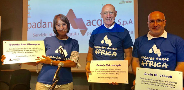 «Grazie al sostegno di Padania Acque – ha commentato la presidente Russo – sarà garantita l’acqua, indispensabile per la vita, nonché per il sostentamento economico, coltivando prodotti agricoli che potranno essere venduti con profitti per tutto il villaggio. Con i fondi del progetto sarà possibile anche destinare delle risorse alla lotta alla malnutrizione dei più piccoli dei villaggi di Mandabe e Antsokay. Il 16 agosto noi saremo là, con le magliette di “Padania Acque for Africa”, festeggeremo con tutto il villaggio e apporremo all’esterno della scuola San Giuseppe le tre targhe, in lingua italiana, francese e malgascio, che Padania Acque ha fatto realizzare a nome di tutti i cittadini della provincia di Cremona. Un gesto bellissimo di cui siamo estremamente grati e riconoscenti».