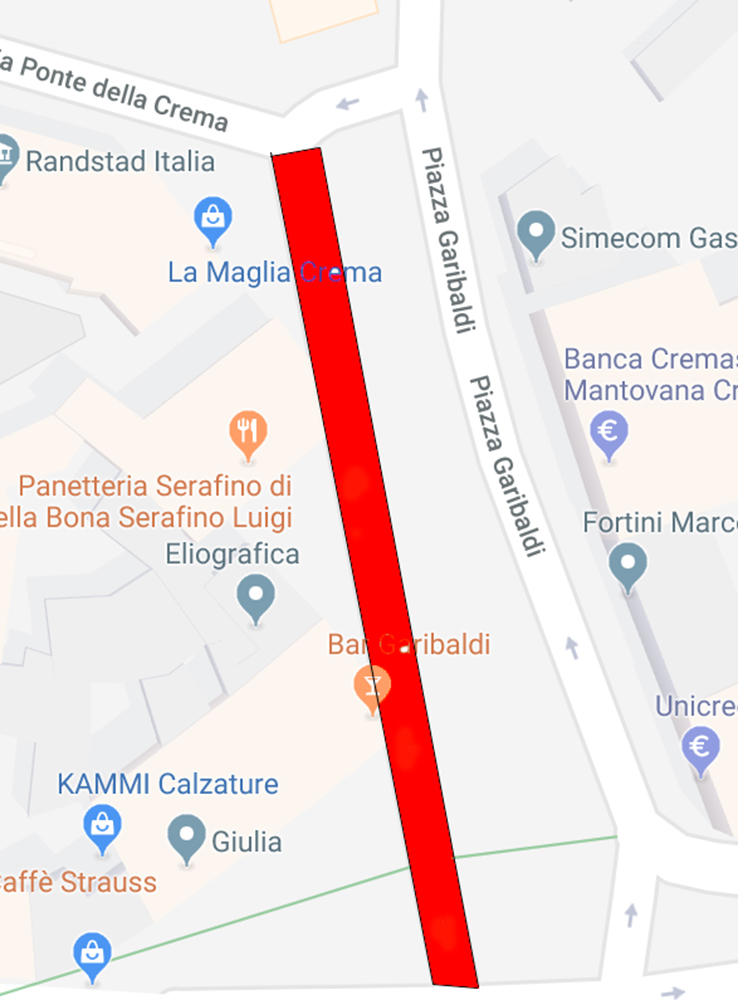 Dal 3 al 6 settembre, i veicoli provenienti da Porta Serio potranno svoltare a destra per eventualmente sostare negli stalli presenti oppure proseguire in via Griffini e in via Ponte della Crema; non sarà invece possibile, arrivati in fondo, svoltare a sinistra per girare attorno all’aiuola e raggiungere la piazza. Anche per chi arrivasse da Via Castello, sarà possibile soltanto proseguire in Via Ponte della Crema.