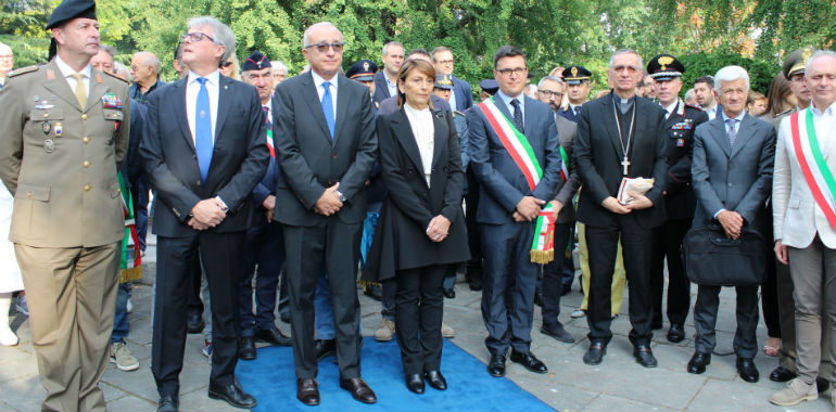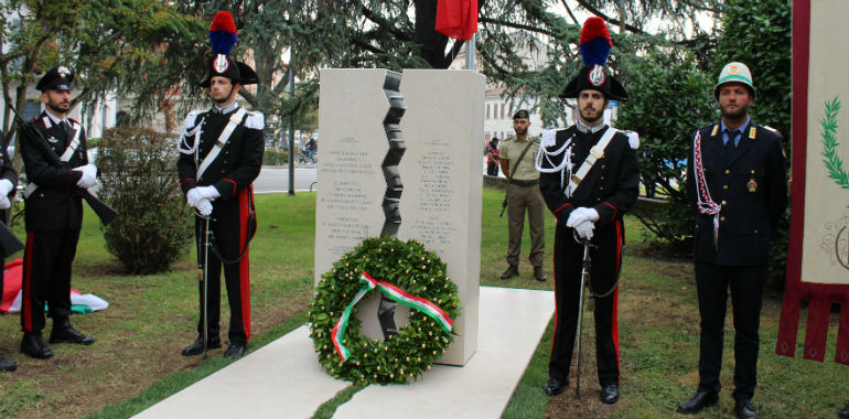 Alla presenza di numerose autorità, religiose, civili, militari e di rappresentanti politici nelle Istituzioni provinciali, regionali e parlamentari, si è tenuta questa mattina l’inaugurazione del monumento ai Martiri di Nassiriya, posto nei pressi della fontana di piazzale Rimembranze e fortemente voluto dal Comitato di coordinamento delle Associazioni Combattentistiche, d’Arma, di Servizio e di categoria di Crema. Presente all’evento Alessandra Savio, vedova del sottotenente Filippo Merlino, tra i diciannove caduti di Nassiriya, che nel suo intervento si è detta onorata della partecipazione ed ha portato il saluto da parte degli altri famigliari delle vittime, ringraziando tutti per la volontà di non dimenticare il sacrificio di coloro i quali quel 12 novembre 2003 hanno perso la vita nell’attentato in terra irachena. La cerimonia è stata accompagnata dall’ Associazione Musicale “Il Trillo – Orchestra di Fiati di Crema” ed ha visto anche la partecipazione di una delegazione di studenti del vicino Liceo Racchetti.