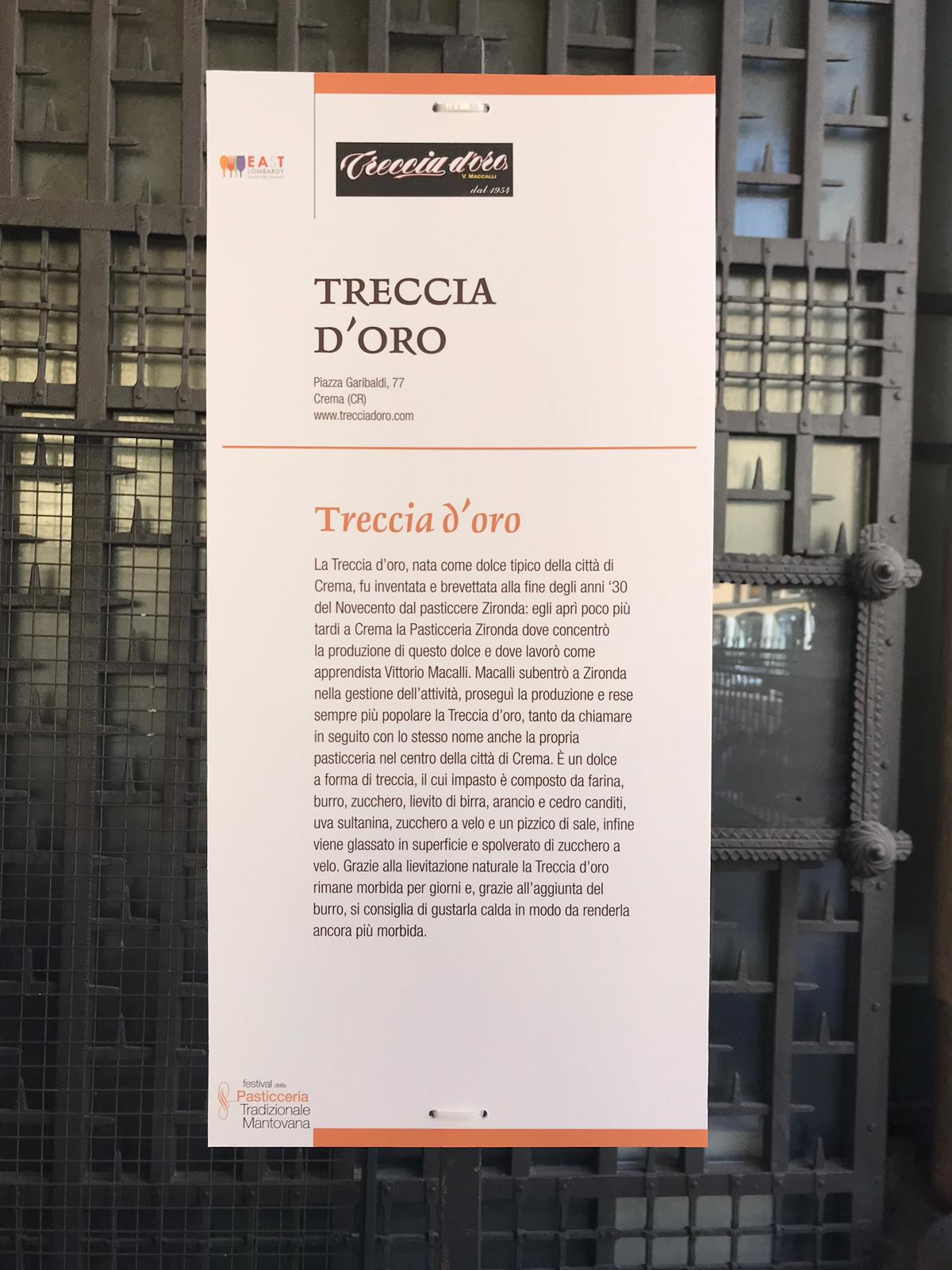 da _La strada dei vini e dei sapori mantovani_, in collaborazione con il Comune e con il supporto della Camera di Commercio. Nella due giorni più dolce dell’anno, i pasticceri hanno portato per la degustazione dolci della tradizione mantovana, prelibatezze dimenticate e dei ricordi. Come nelle passate edizioni, anche quest’anno sono stati coinvolti i pasticceri delle province di Bergamo, Brescia e Cremona che con Mantova si sono raccolte in un unico territorio denominato Ea(s)t Lombardy, condividendo tradizioni, passione e gusto. Il territorio cremonese è stato rappresentato dalla pasticceria Treccia d’oro di