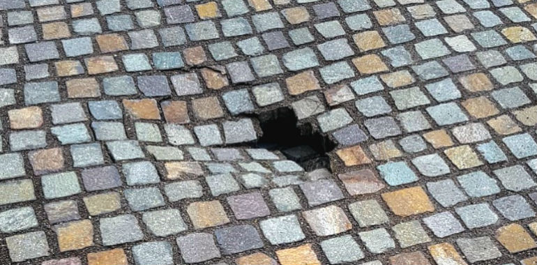In piazza Garibaldi cedono alcuni tasselli della pavimentazione