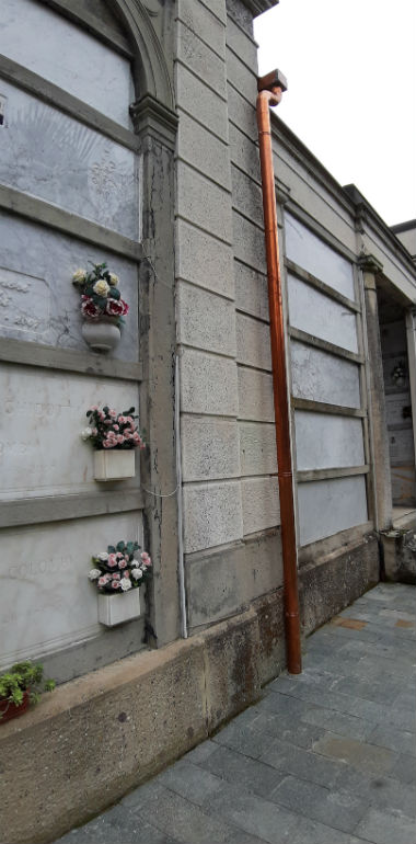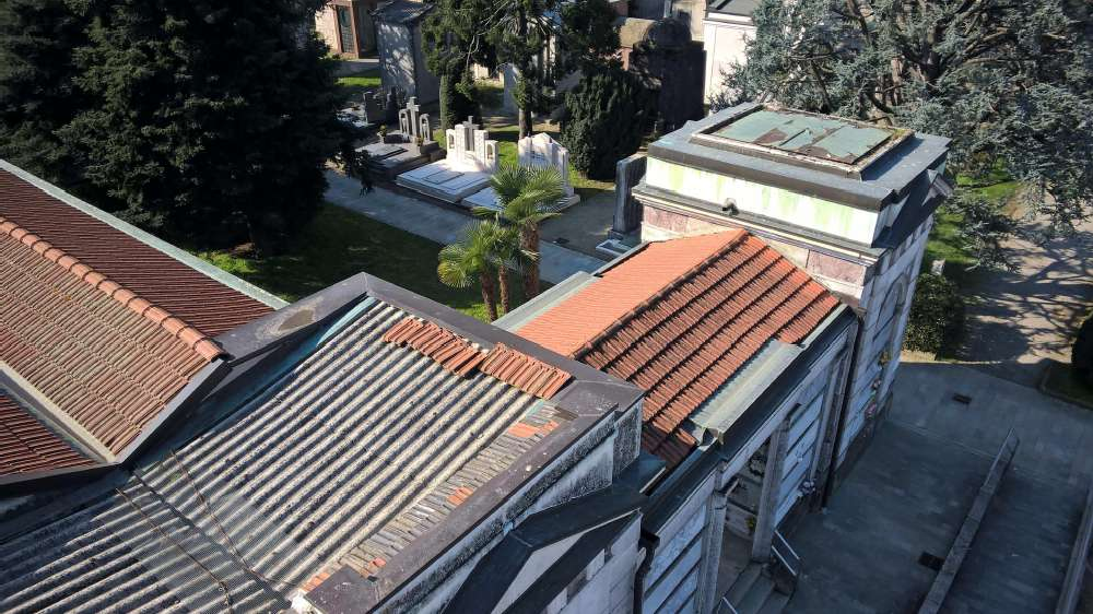 Al cimitero Maggiore sono stati da poco effettuati dei lavori di manutenzione, sia ordinaria – in vista appunto delle festività – con la sistemazione di aiuole e vialetti, sia straordinaria. Quest’ultima, che è in fase di conclusione, ha visto interventi sulle coperture del monumentale, l’ammodernamento dell’impianto di raccolta delle acque e la sistemazione delle murature. Anche il sotterraneo del monumentale, dove erano presenti infiltrazioni d’acqua che avevano provocato l’ossidazione delle armature e il distaccamento dei corpi ferri, è stato sistemato. Al piano terra, la pavimentazione all’ingresso sud presentava estese fessurazioni che non garantivano la tenuta dell’acqua: è stato dunque eseguito il rifacimento dell’impermeabilizzzione dei solai di copertura dei locali interrati lato sud e, di conseguenza, quello della pavimentazione corrispondente al pianterreno