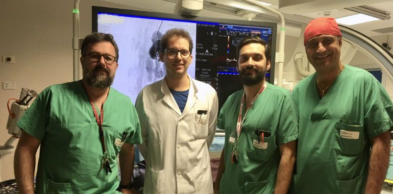 Già molti colleghi da tutta Europa hanno chiesto di poter osservare la procedura dal vivo: per questo stiamo pianificando per i prossimi mesi, i corsi dedicati alla procedura nella nostra sala angiografica. I ringraziamenti più sentiti da parte dell’équipe interventistica vanno a tutti i colleghi, tecnici e infermieri che hanno reso possibile la realizzazione del progetto e alla direzione strategica che sostiene queste specialità in termini di tecnologia d’avanguardia e di materiali sofisticati e di ultima generazione.