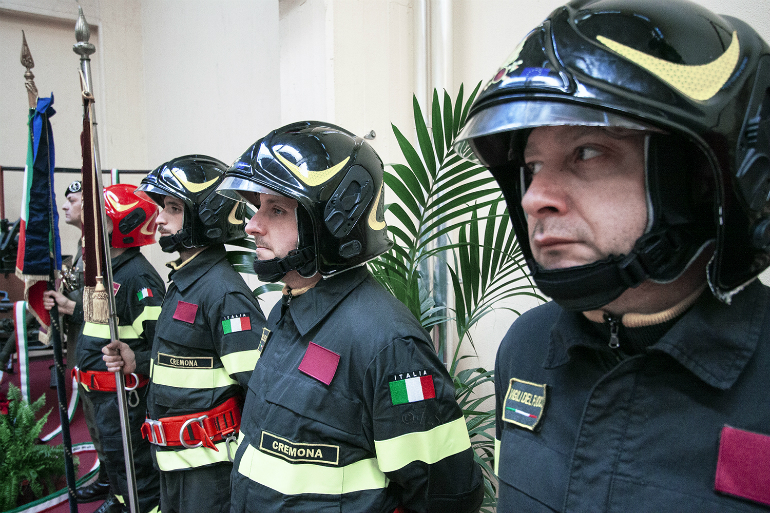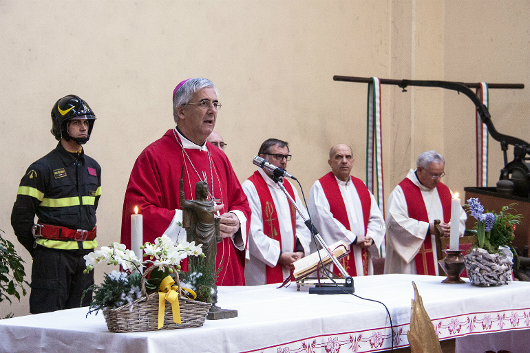Circostanze in cui i Vigili del Fuoco operano quotidianamente: Poter salvare vite umane, estrarre un bambino dalle macerie, costruire speranza: anche per queste cose i Vigili del Fuoco sono ai primi posti nella stima degli italiani. Perché hanno scelto una professione che mette al centro il rischio. Ma chi ve lo fa fare di correre rischi per salvare gli altri? Ce lo ha insegnato Gesù Cristo, dicendo che bisogna mettere gli altri davanti a se stessi. Questa capacità di rischiare oggi è necessaria, in un mondo in cui prevale il tornaconto personale e la fuga dalle responsabilità. Grazie e spero che tutti possiamo imitare il vostro esempio” conclude il vescovo.