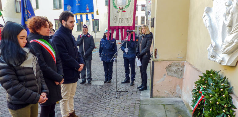 Questo l’incipit del discorso tenuto dal sindaco Stefania Bonaldi, questa mattina, in piazza Istria e Dalmazia in occasione della Giornata della Memoria. Presenti alla commemorazione che ricorda le vittime dell’Olocausto e la liberazione dei pochi sopravvissuti al campo di sterminio di Auschwitz, gli studenti di alcune classe degli istituti superiori della città (Racchetti-Da Vinci, Galilei, Sraffa, Stanga e Marazzi).