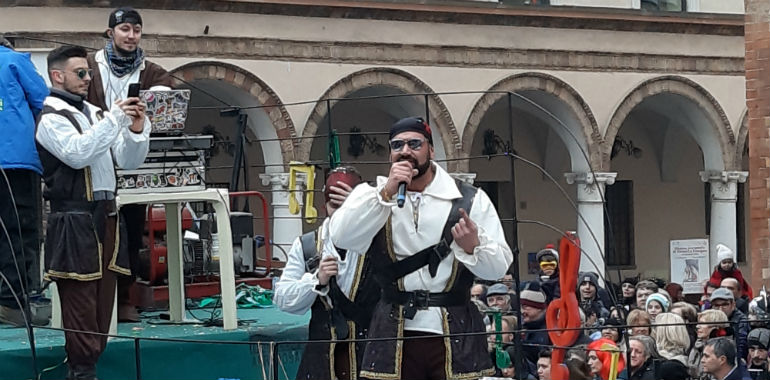 Come l’anno scorso, il rapper nostrano Alessandro Bosio è stato l’ospite più atteso, che ha chiuso la carovana delle performaces odierne. Vestito da pirata e al seguito di un nutrito gruppo di ballerine, Bosio ha lanciato l’inno scritto appositamente per la kermesse cremasca, sulle note di “Andiamo a comandare” di Rovazzi (successo di qualche anno fa).