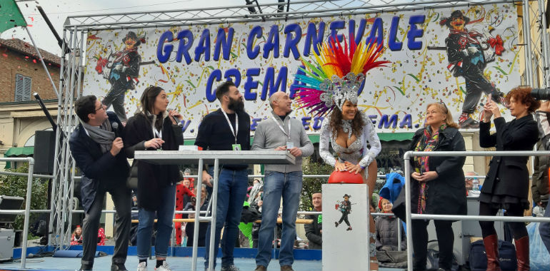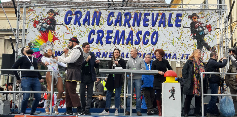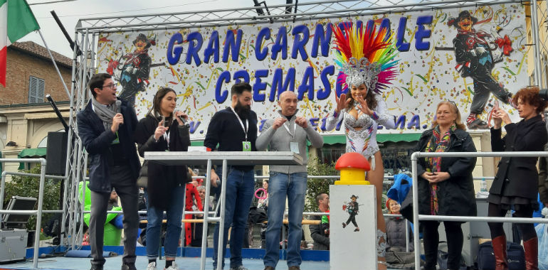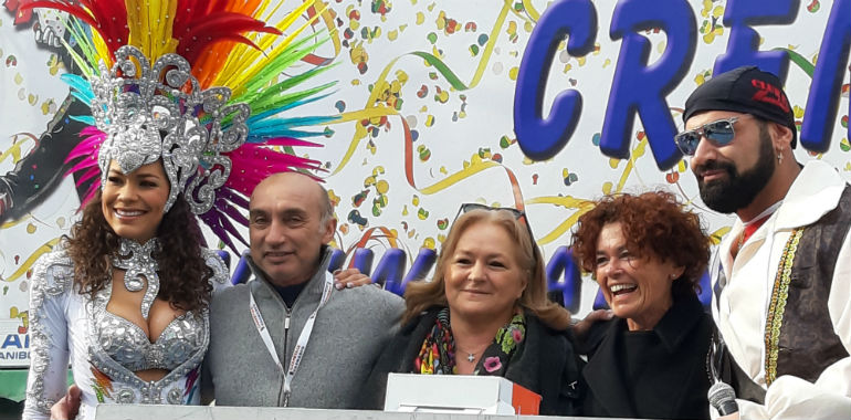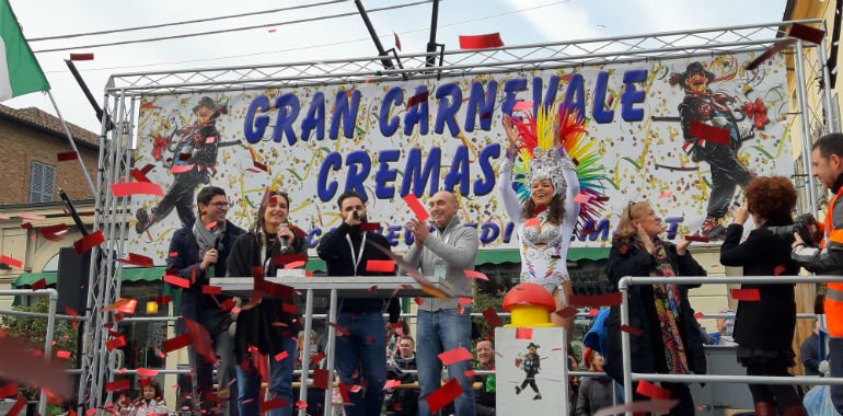 Il Carnevale di Crema è iniziato. Poco dopo le 14.30, questo pomeriggio, è stata inaugurata la 34esima edizione, alla presenza del sindaco Stefania Bonaldi e dell’assessore alla Cultura Emanuela Nichetti, che hanno ospitato sul palco in piazza Giovanni XXIII – insieme al presidente del Comitato Eugenio Pisati – la bellissima Kenia Fernandes, uno dei personaggi del programma MEdiaset ‘Avanti un altro!”