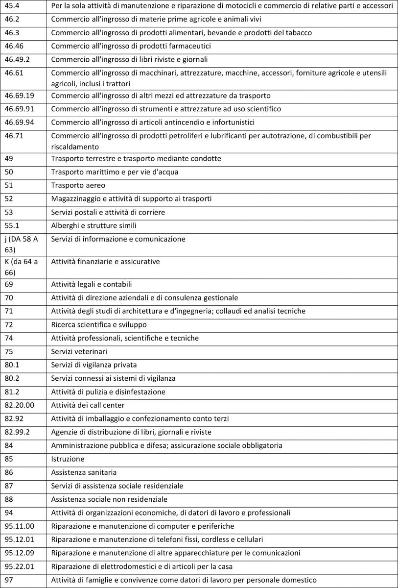 E’ di 80 voci (riportato qui di seguito, ndr) l’elenco delle attività che continueranno a rimanere aperte e sono contenute nell’allegato 1 al Dpcm. Come anticipato, nessuna restrizione per la filiera alimentare, come anche per i dispositivo medico-sanitari e della farmaeceutica. La lista potrà essere aggiornata con decreto del Mise sentito il Mef.