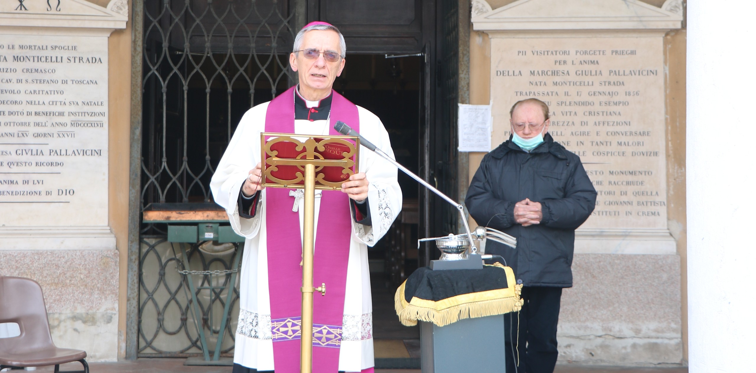 Visita del vescovo Daniele al cimitero di Crema e preghiera per i defunti da Coronavirus