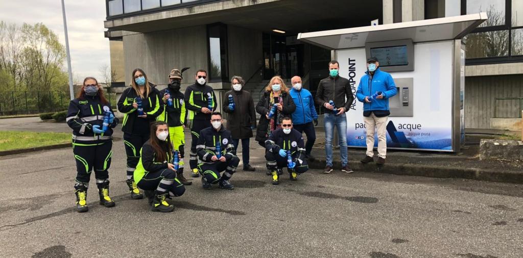 Padania Acque Alessandro Lanfranchi, il direttore socio sanitario dell’Asst di Crema Pier Mauro Sala, il presidente della Protezione Civile di Crema Giovanni Mussi e alcuni volontari.