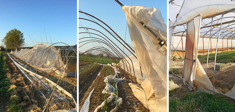 Bufere di vento: serre e tetti divelti. Danni nei campi per centinaia di migliaia di euro