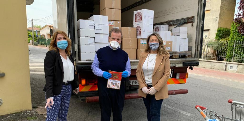 La Presidente Laura Franceschini ha contattato, con il supporto di alcuni soci, i parroci di due parrocchie cittadine per offrire un contributo concreto alla sussistenza delle famiglie che, a causa del protrarsi di questa emergenza, versano in condizioni di necessità. Don Lorenzo Roncali di San Bernardino e Don Michele Nufi della Parrocchia di San Giacomo e San Bartolomeo venerdì pomeriggio hanno accolto con gioia oltre 4000 confezioni di generi alimentari da destinare alle famiglie del loro territorio.