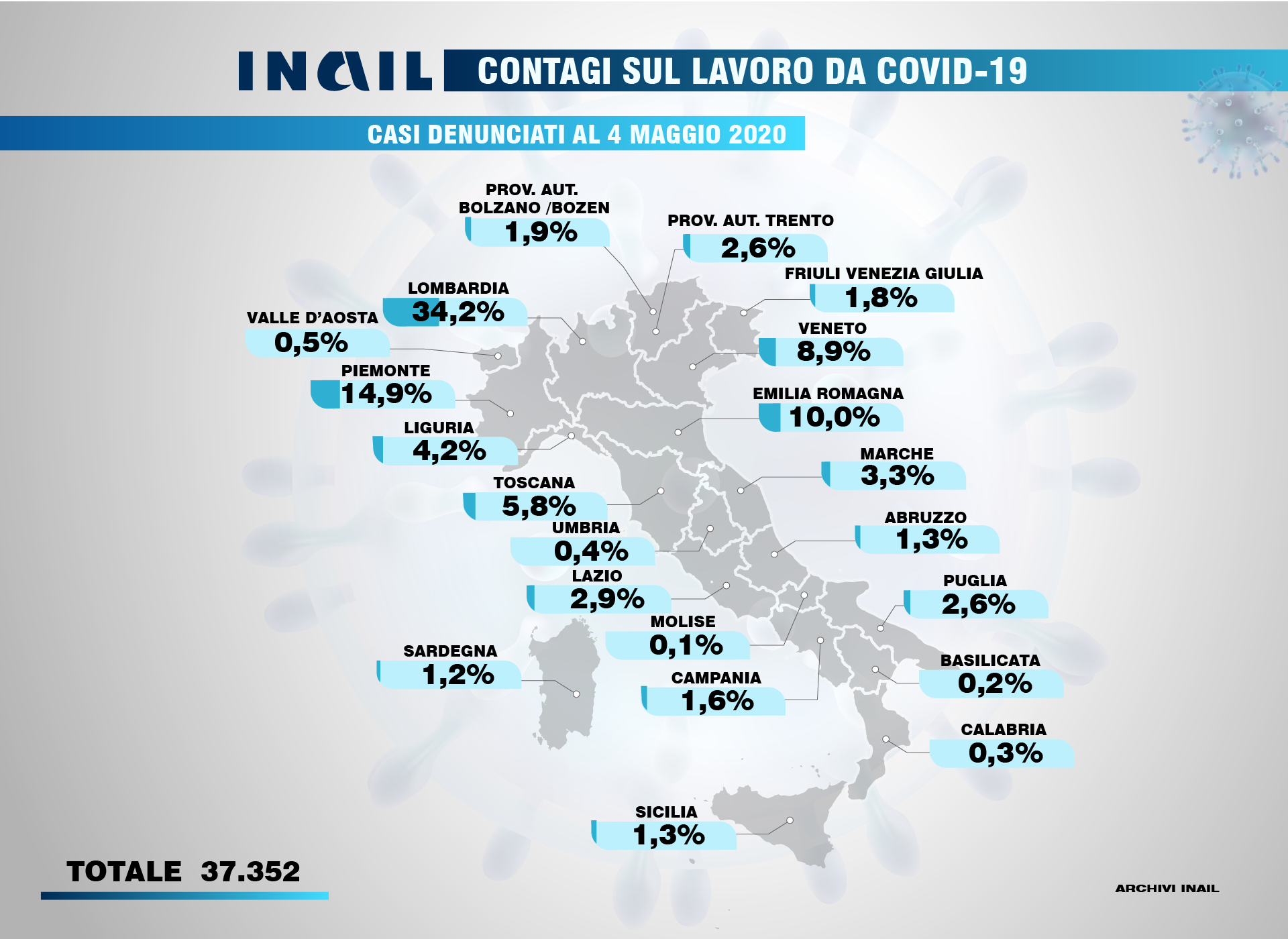 “La regione Lombardia ha registrato più di 85.000 contagi Covid-19, ci chiediamo quanti siano gli infortuni lavorativi da Covid-19 non denunciati” così Roberto Oliva, Presidente Provinciale del Patronato Acli di Cremona “Sono state 12.774 le denunce di infortunio INAIL in Lombardia, pari al 34,2% sul totale Italia, dove i casi denunciati al 4 maggio 2020 sono stati 37.352.”