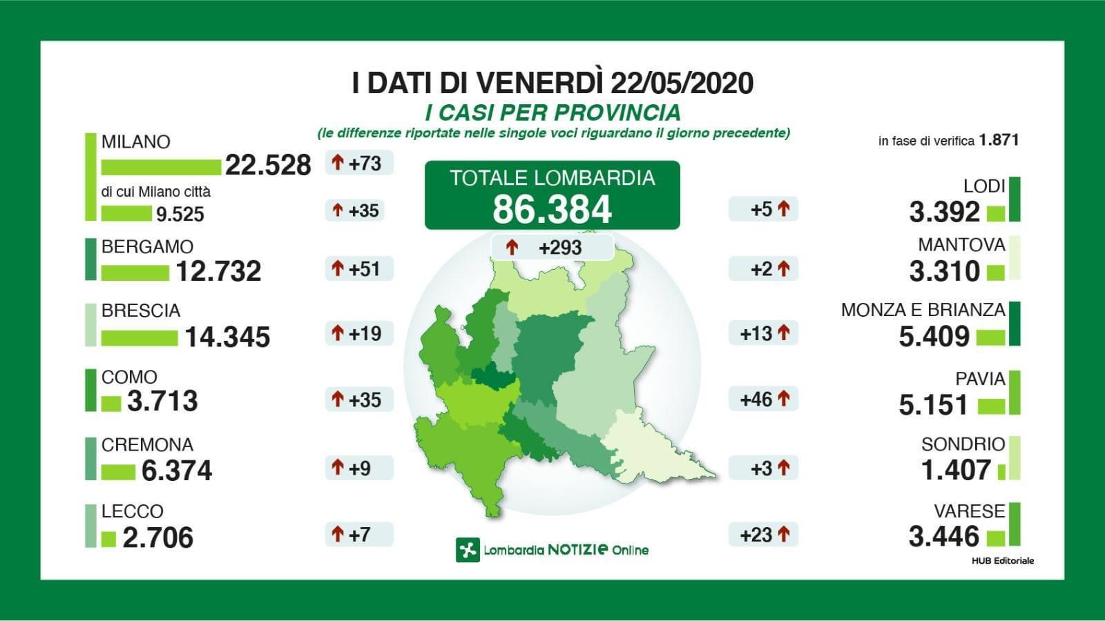 Un decesso e altri 9 tamponi positivi al Covid in provincia di Cremona, nell’ultimo aggiornamento dell’assessore regionale Giulio Gallera: siamo ora a 6.374, mentre in Lombardia, con i 293 casi di oggi, si raggiunge quota 86.384 contagiati, a fronte di un alto numero di tamponi eseguiti, oltre 19mila. 57 le persone che hanno perso la vita oggi (totale 15.784), mentre i guariti o dimessi nelle ultime 24 ore sono stati 1.018 e portano il numero complessivo da inizio pandemia a 44.667. Si confermano in calo costante i ricoveri in terapia intensiva scesi di altre 19 unità (siamo ora 207 posti letto occupati). Scendono di 91 anche i posti letto ordinari, arrivando a 4.028.