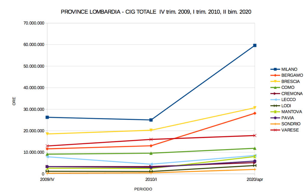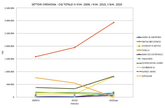 Dall’osservatorio della Cisl Lombardia emerge una forte richieste di cassa integrazione (ordinaria, straordinaria e in deroga) nel bimestre marzo-aprile 2020. In provincia di Cremona, infatti, sono il 54,05% di quelle richieste nel I trimestre 2010 e, se confrontate con il IV trimestre 2009, la crescita è del 54,66%. L’Osservatorio Cassa integrazione guadagni della Cisl Lombardia ha infatti messo a confronto i dati Inps relativi al biestre marzo-aprile 2020 con il IV trimestre del 2009 (quello con il numero maggiore di ore nella gestione Cigo durante gli anni della crisi) e il I trimestre 2010 (quello con i valori totali di Cig più alti). Il valore delle ore di Cigd inserito nei dati dell’INPS equivale alle ore decretate da Regione Lombardia fino al 24 aprile, con la Cisl che sottolinea come l’INPS “abbia consuntivato nel mese di aprile le ore di cig richieste da fine febbraio a fine aprile, ossia i primi due mesi di causale Covid-19”.