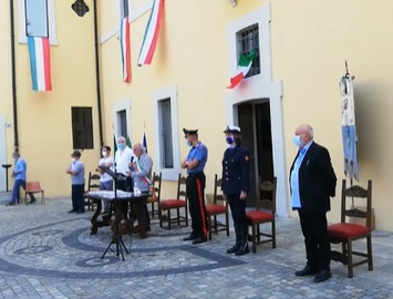 Oggi insieme a me, oltre al maresciallo Marco Prete, comandante della stazione dei carabinieri di Camisano, in rappresentanza delle forze armate che da sempre hanno partecipato a questa cerimonia e che sono un elemento portante dell’unità nazionale, c’è anche il parroco, don Ernesto Mariconti.