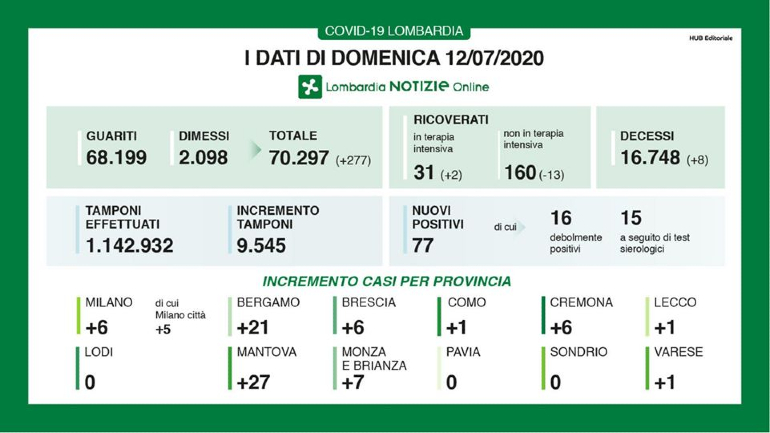 C’è ancora Mantova tra le province a far registrare l’incremento maggiore (+27), seguita da Bergamo (+21), mentre a Lodi, Pavia e Sondrio non è stato segnalato alcun caso.