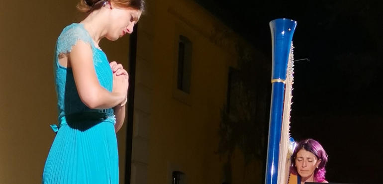 Ieri sera, sabato 25 luglio, standing ovation a Casale Cremasco Vidolasco per Daniela Zilioli, soprano, e Michela La Fauci, all’arpa, nella piazza del comune, per il quarto appuntamento della rassegna Estate in riva al Serio, che proseguirà anche per i prossimi quattro sabati di agosto. Un duo perfetto che ha dosato musiche classiche e moderne, canto e arpa con un risultato che ha entusiasmato il pubblico, numerosissimo e partecipe.