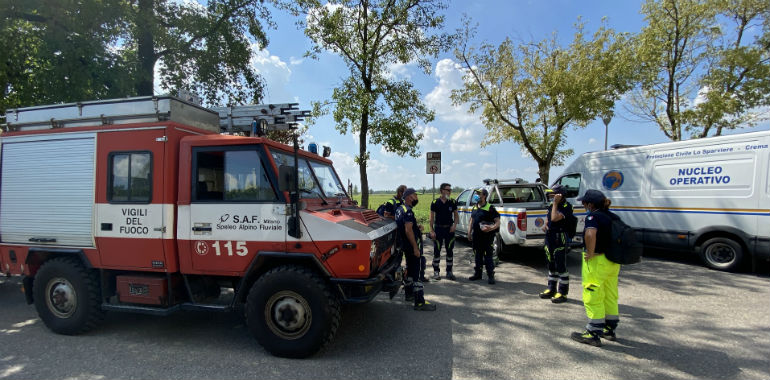 Unità cinofile, elicottero, sommozzatori. Vigili del Fuoco e Protezione Civile, oltre ai Carabinieri, sono al lavoro incessantemente per trovare tracce di Sabrina Beccalli, svanita nel nulla dalla mattina di Ferragosto, dopo aver lasciato il figlio quindicenne a casa di un amico a Milano con la promessa di rivedersi più tardi per il pranzo in un parco acquatico. La strada principale di Vergonzana è diventata quartier generale da cui si dipartono le ricerche. Le indagini sono svolte dal Nucleo operativo del comando provinciale dei carabinieri di Cremona, coordinate dal procuratore della Repubblica di Cremona Roberto Pellicano, che ha disposto il sequestro dell’abitazione della 39enne, in via Vittorio Veneto a Crema. Le ricerche si stanno svolgendo attorno al luogo di ritrovamento dell’auto in fiamme, sia nei campi che nei corsi d’acqua. Non sono state trascurate neppure le cisterne di liquami, una ricerca a tutto campo condotta con l’ausilio dei volontari di Protezione Civile (il gruppo Lo Sparviere e altri gruppi del cremasco). 24 i volontari impegnati a setacciare i campi e i corsi d’acqua al mattino e altrettanti nel turno del pomeriggio, una ricerca che finora non ha dato alcun esito. Per questo gli inquirenti tengono aperte tutte le ipotesi. Nel pomeriggio si è svolta in Prefettura una riunione dell’Unità di Crisi, durante la quale è stata decisa la prosecuzione delle ricerche fino a giovedì, quando verrà fatto nuovamente il punto della situazione.