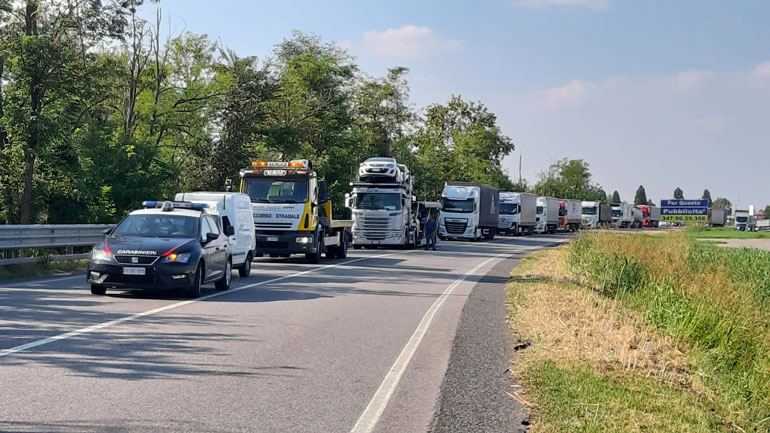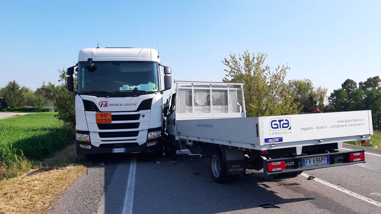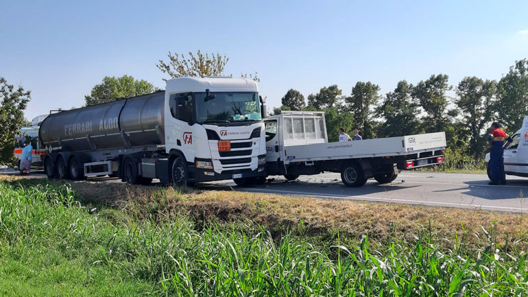 Furgone contro autobotte a Madignano: Paullese bloccata
