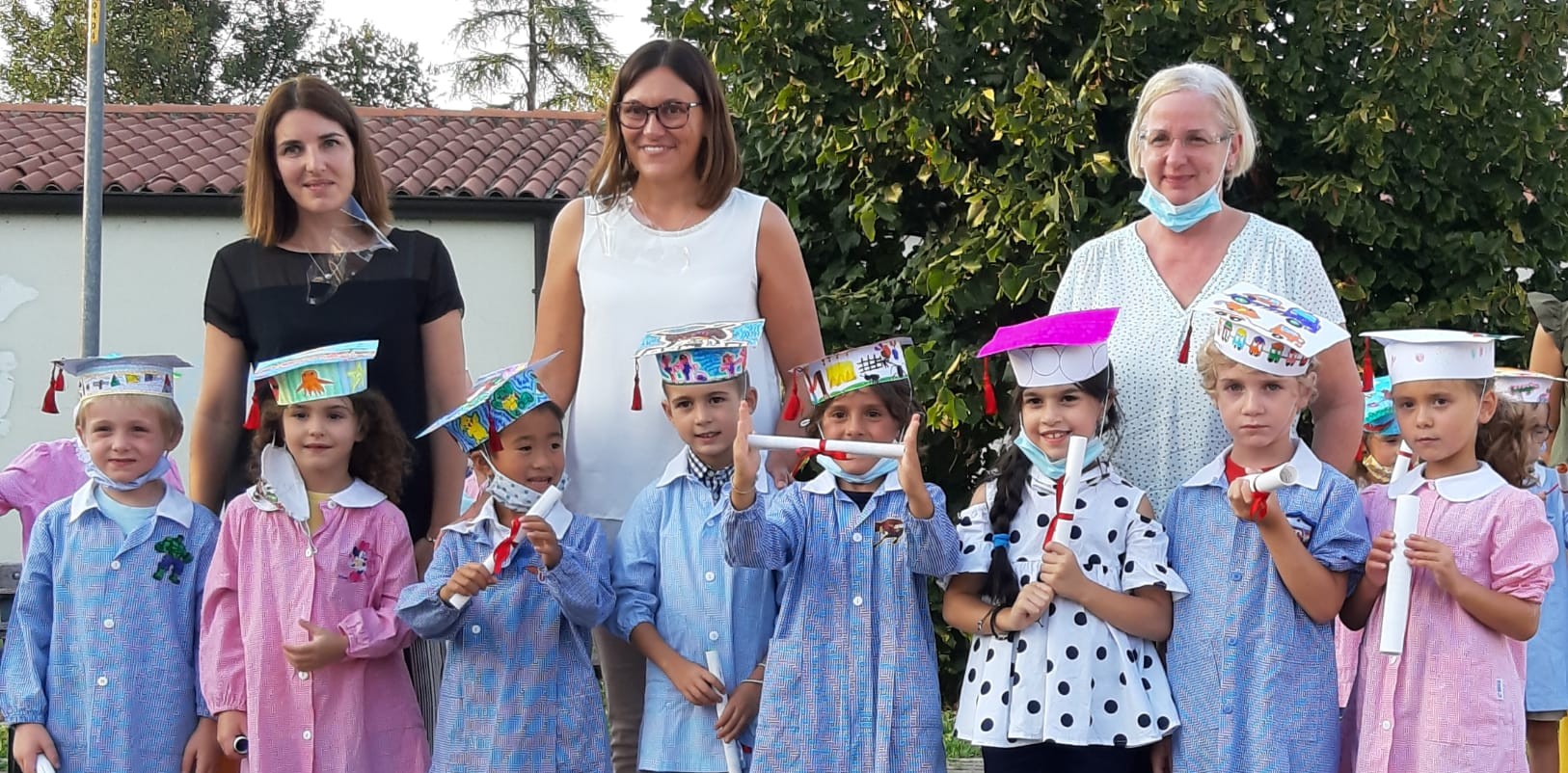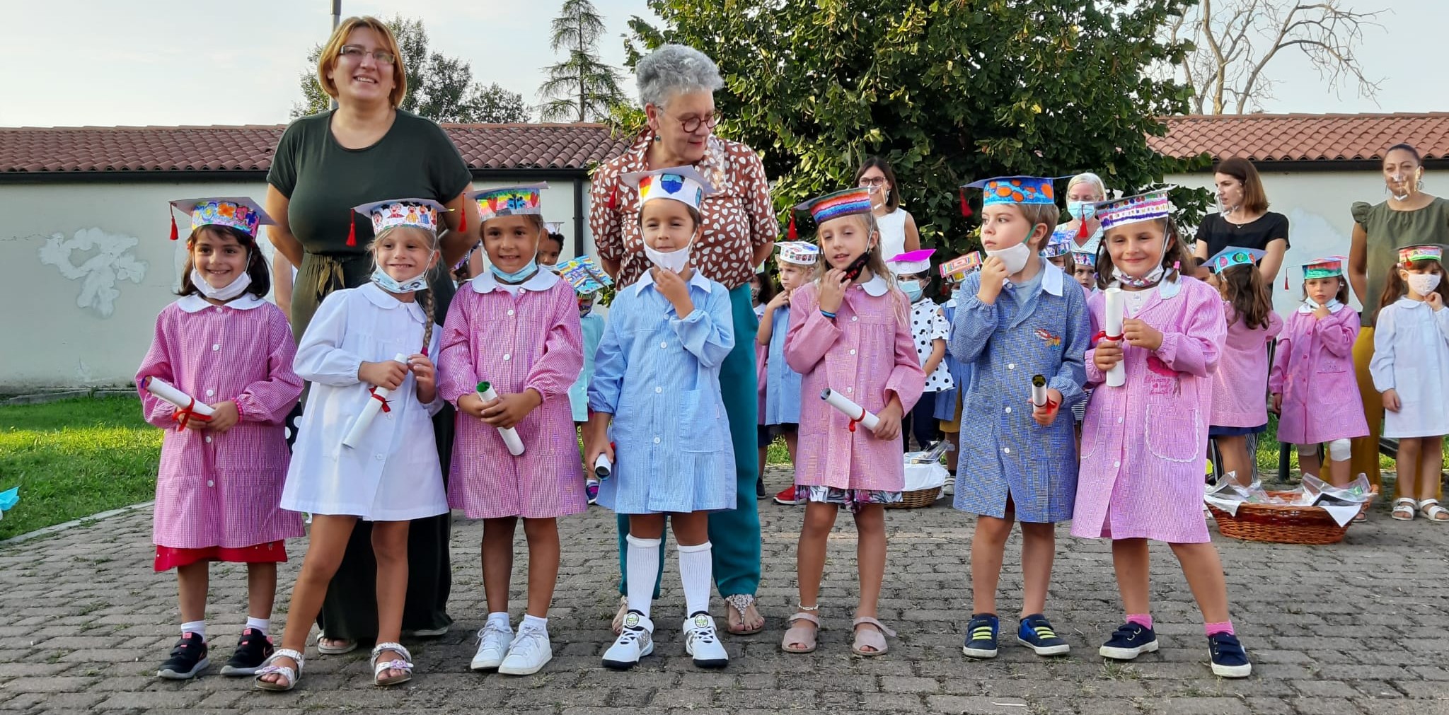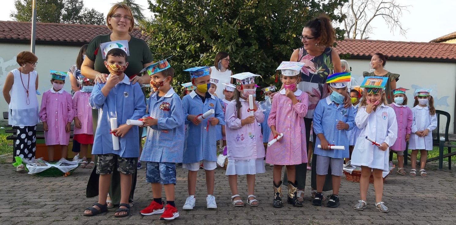 Ieri, queste bambine e bambini, hanno orgogliosamente indossato il grembiule, e con il cappellino assemblato hanno ritirato l’attestato del Montessori dalle mani della direttrice Emilia Caravaggio. Gli sguardi ancora un po’ confusi nel vedere le maestre con quella strana pellicola sul viso, ma felici di poter vivere un momento che conclude una tappa fondamentale della vita. “Era importante ritrovarci e ricucire quello che si era spezzato per poter da lì ricominciare, facendo tesoro dell’epserienza passata alla scuola dell’infanzia e poter salpare verso il nuovo viaggio alla scuola primaria”, ha concluso la direttrice.