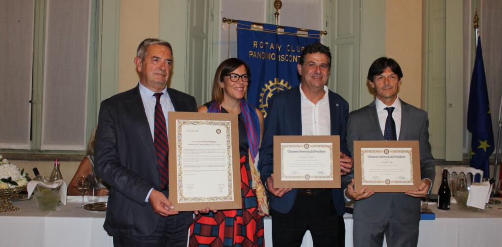 Si è tenuta ieri sera nella cornice di Villa Toscanini a Ripalta Guerina, alla presenza di autorità rotariane, politiche e del Rotaract, la conviviale del Rotary Club Pandino Visconteo che, come ha ricordato la presidente Marianna Patrini ha voluto essere, “una serata di tributo, riconoscimento e ringraziamento per l’ospedale Maggiore”. Un incontro partecipato, per rappresentare l’esperienza e la testimonianza diretta dei medici impegnati in prima linea nei mesi centrali dell’emergenza Covid, con la consapevolezza che bisogna continuare a fronteggiare il virus con attenzione e diligenza, rispettando le indicazioni relative alle procedure, al distanziamento e alle protezioni individuali. Al tavolo degli ospiti, Germano Pellegata, direttore generale dell’Asst Ospedale Maggiore di Crema e i dottori Giovanni Viganò e Giuseppe Lupi, rispettivamente primario del Pronto Soccorso e responsabile del reparto di terapia intensiva, entrambi pandinesi, come ha ricordato nella presentazione il past president Gianfranco Fassina, che li ha definiti “l’essenza del medico, motivo di orgoglio ed esempio per tutti”. Tra i saluti, quello del vice questore Bruno Pagani, che riprendendo l’ideale rotariano di servire la società ha fatto il parallelo con quel servizio al cittadino che caratterizza l’azione della Polizia di Stato.