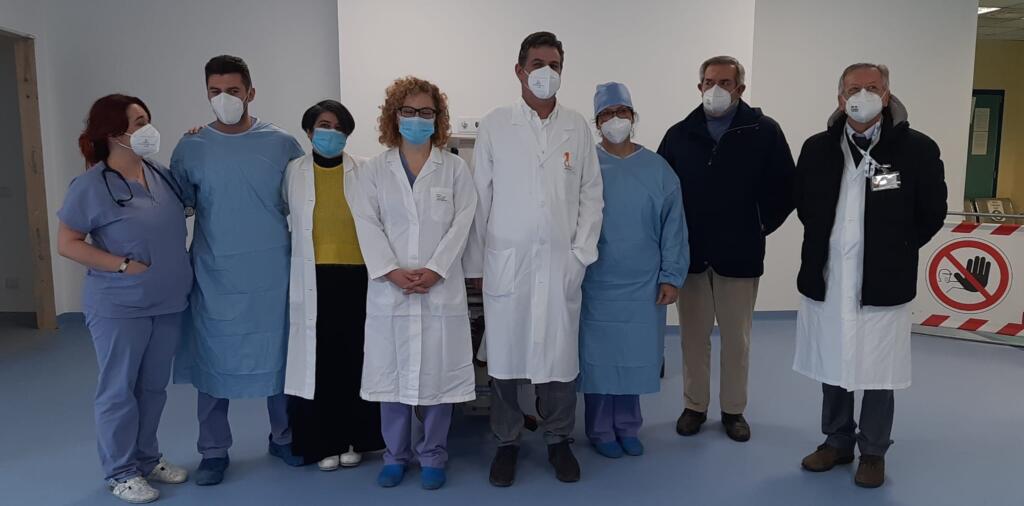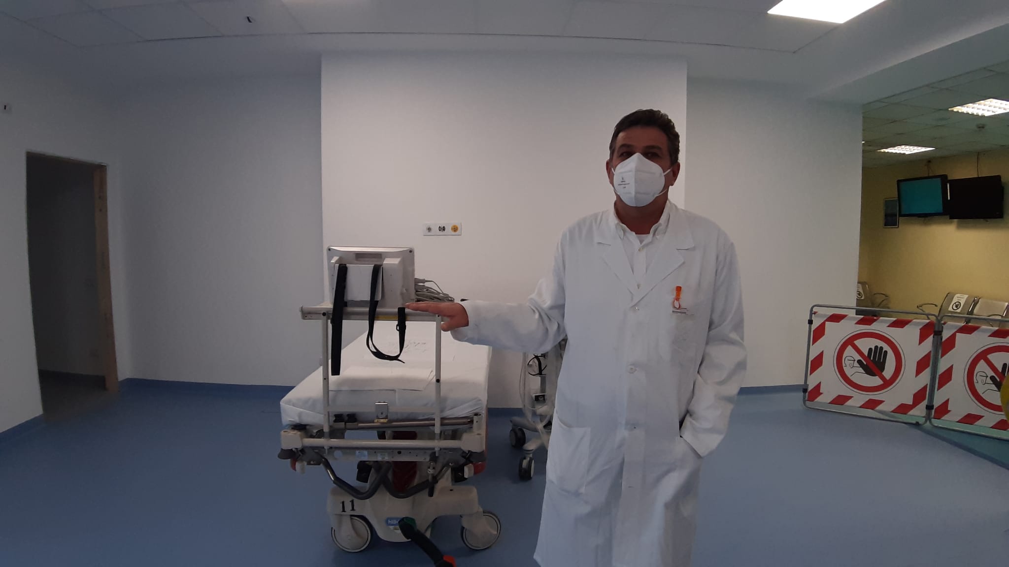 180 metri quadrati che ospitano 5 sale visita a disposizione del personale in turno al pronto soccorso, ovvero l’internista, il chirurgo e, dalle 8 alle 20, l’ortopedico. “Già prima dell’emergenza covid abbiamo capito che la nostra necessità era di avere spazi ampi, polifunzionali e modulabili”, ha spiegato il primario Viganò. La sala d’attesa – che al termine della pandemia sarà destinata ai pazienti deambulanti – è dotata di numerose prese per l’ossigeno, proprio nell’ottica della multifunzionalità.