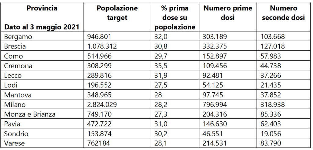 Per quanto riguarda le varie tipologie di vaccino, infine, la maggior parte delle somministrazioni in Lombardia è stata effettuata con Pfizer (68,75%), seguita da AstraZeneca (23,22%), Moderna (7,41%) e Janssen (0,61%).