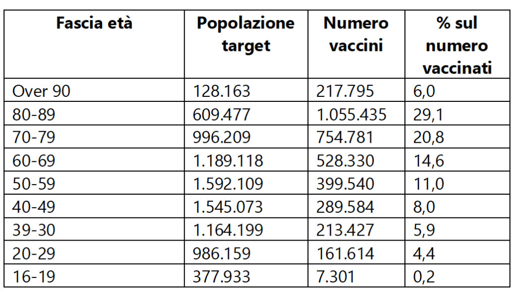 In totale, in Lombardia sono state somministrate 3.627.807 dosi di cui 2.610.119 come prima e 1.017.688 come seconda. La maggior parte delle inoculazioni è stata somministrata agli over80 (1.273.230 vaccini, corrispondente al 35% sul numero dei vaccinati).