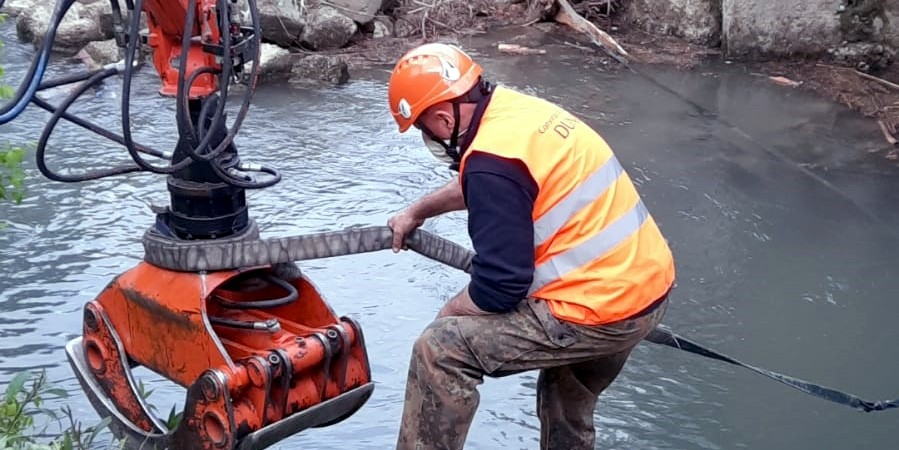 L’intervento è iniziato ieri: 6 operatori del Consorzio Dunas hanno utilizzato una “ragno gru” e varie attrezzature per asportare i tronchi senza farli defluire nel corso d’acqua.