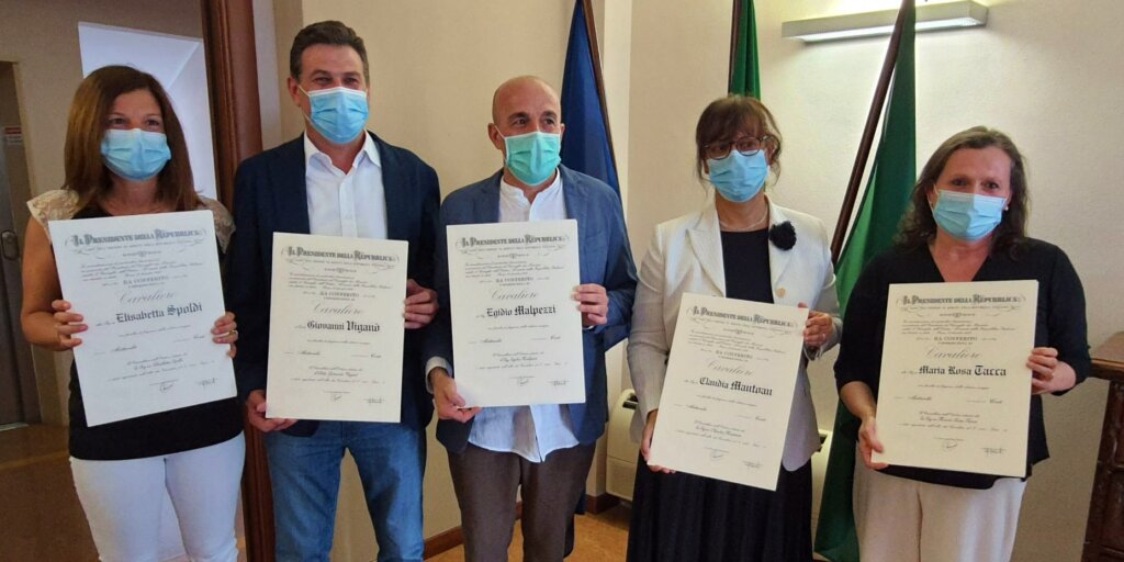 Si è svolta con una cerimonia semplice ma sentita la consegna dell’onoreficenza di Cavaliere al Merito della Repubblica ai cinque operatori sanitari dell’ospedale Maggiore di Crema. I sanitari, accompagnati ciascuno dal sindaco del proprio Comune di residenza, ha ricevuto dal direttore generale Germano Pellegata la targa di Cavaliere.
