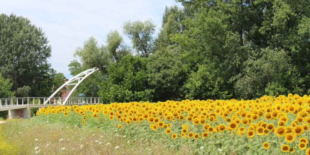 Lo scorso 18 settembre, il presidente del Parco del Serio, Basilio Monaci l’aveva detto, in occasione dell’inaugurazione del tratto di ciclo pedonale lungo l’argine del Serio, che permette ai cittadini di superare la passerella Giorgio Bettinelli e rientrare nei pressi del ponte di via Cadorna, dal lato opposto a quello di piazzale Rimembranze. In quell’occasione, venne annunciato che in accordo con il comune di Crema, il Parco del Serio si sarebbe occupato della semina di essenze colorate nell’area di più di 3 ettari adiacente la passerella Bettinelli, intervento che nelle intenzioni dei promotori avrebbe dovuto garantire un colpo d’occhio particolarmente suggestivo proprio a partire dalla primavera di quest’anno. Non sempre dagli annunci poi si riesce a giungere alla realizzazione, ma in questo caso ciò che è stato programmato si è realizzato secondo i tempi indicati. Prima le due siepi di fiori di campo, che nelle scorse settimane hanno colorato il panorama verso la passerella Bettinelli, e da qualche giorno, i girasoli fioriti, per un colpo d’occhio apprezzato da tutti coloro che si trovano a passare da quelle parti.