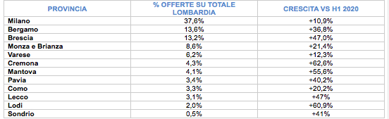 Mercato del lavoro in ripresa dopo la contrazione scandita dai lockdown. In Lombardia l’incremento dell’offerta è nell’ordine del 25%, regione locomotiva d’Italia. E se Milano è ai vertici nazionali, la provincia che fa segnare la crescita maggiore è quella cremonese, +62,6% nel primo semestre 2021.  Questi i dati diffusi dall’osservatorio Infojobs, piattaforma per la ricerca online che ha registrato 73mila proposte d’impiego in Lombardia da gennaio a giugno. Si tratta del 31% del totale nazionale.