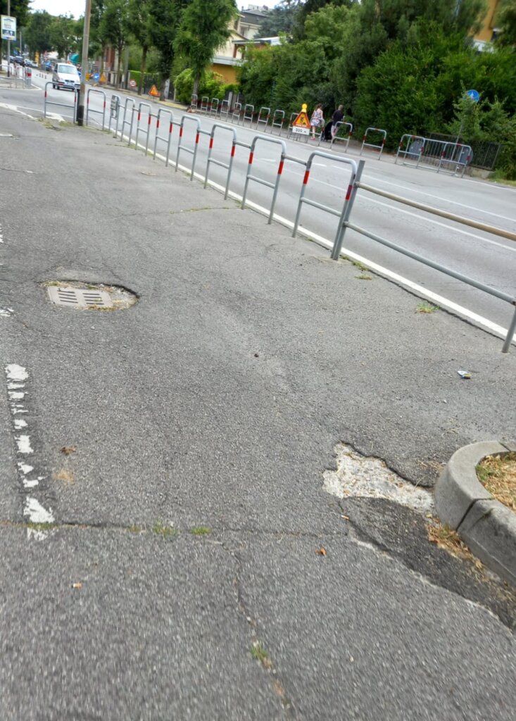 Ciclabile di via Indipendenza in “stato pietoso”. La denuncia arriva dal consigliere comunale del M5s Manuel Draghetti, che aggiunge: “Queste buche (o voragini?) non sono certo imputabili a qualche mese di ritardo nella manutenzione ordinaria di strade e ciclabili, ma sono frutto di lustri di dormienza da parte dell’Assessorato ai Lavori pubblici e della Giunta tutta”.