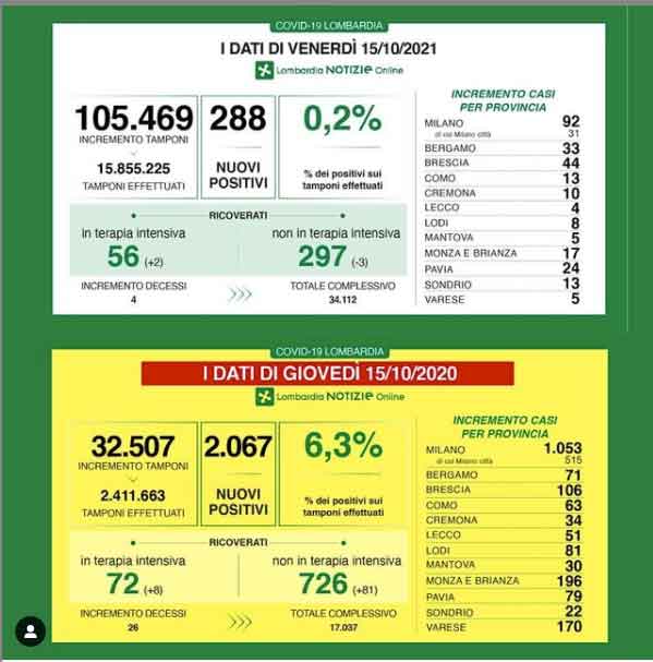 I numeri, oggi, restituiscono la fotografia di una Lombardia che sta uscendo dall’emergenza e dalla crisi pandemica: ormai da quattro mesi consecutivi in zona bianca, con numeri incoraggianti e ancora in discesa, nonostante sia trascorso ormai un mese esatto dall’inizio delle scuole e le restrizioni non siano più quelle rigide dello scorso anno.