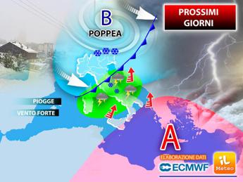 Un nuovo impulso del ciclone Poppea è già in atto: lo scenario meteorologico è destinato a restare ancora piuttosto movimentato anche nei prossimi giorni, quando sull’Italia torneranno nuove piogge, venti forti e pure la neve in montagna. Il team del sito www.ilMeteo.it comunica che nel corso della giornata di mercoledì 3 novembre nubi, piogge e pure qualche temporale colpiranno diverse aree del Nord e del Centro. I fenomeni più intensi si concentreranno nella prima parte del giorno al Nordovest e su gran parte dell’area tirrenica, mentre il tempo sarà più asciutto altrove, in particolare al Sud, fatta eccezione per qualche piovasco sulla Sicilia. Tra il pomeriggio e la sera a causa di un nuovo vortice ciclonico in formazione a ridosso della Liguria le precipitazioni più intense colpiranno la Lombardia, il Nordest, la Toscana, nonché medio e basso Tirreno.