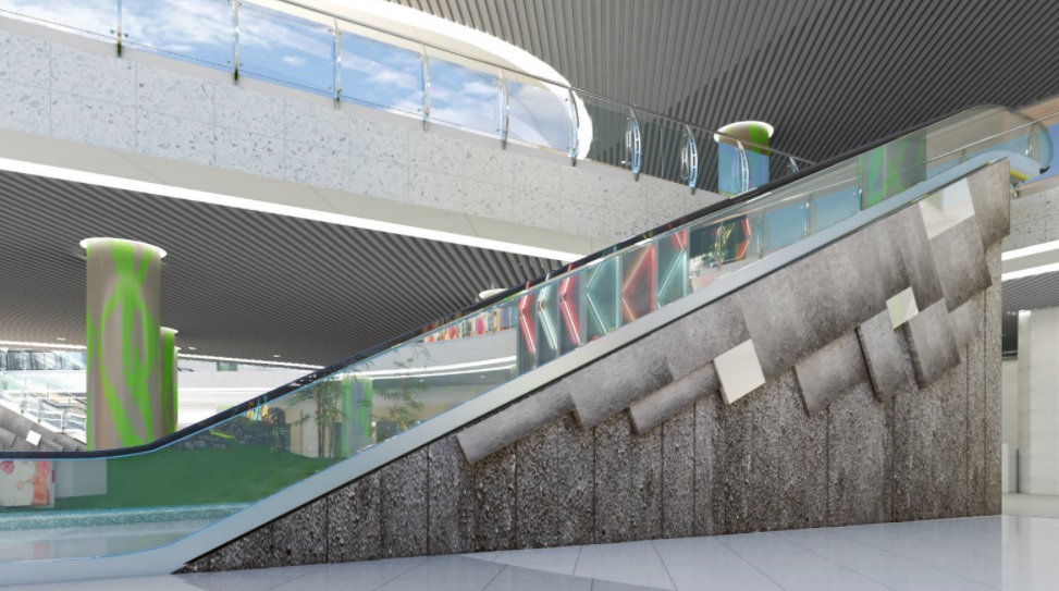 Il vento, il mare, le terre, gli incontri; in colori, forme e materiali, volendo così tramettere sensazioni, vibrazioni emozionali e percettive, come hanno spiegato Bettinelli, Leone e Macalli. “Ricordiamo il vento che muove il panneggio e le vibra con le forme della Grande Parete, dove si sovrappongono anche i ricordi; l’acqua del Rivolo che ci guida in tutto il racconto; le Balene simbolo di umanità universale; i Luoghi di Incontro che pur essendo due, distinti e non del tutto uguali, si uniscono condividendo lo stesso luogo gli stessi colori, la stessa capacità di accogliere; il Libro ed il verde con i Bambù che racconta le identità dei nostri territori; la Pergola che simboleggia il necessario riparo agli elementi della natura, il troppo vento, pioggia e sole; i diversi colori e decori delle Colonne, degli Ascensori, delle Scale, che sostengo, connettono e collegano le parti della stazione e queste con l’esterno del mondo; e la realtà della vita quotidiana specchiata nel Soffitto, richiamata nelle tre pareti con i Voli che più intimisticamente vuole collegarsi al personale animo umano. Per questo i nostri colori sono vivi ma anche rarefatti; le forme sono pure, nette e semplici ma anche complesse; i materiali sono presi dalla natura ma artefatti dal lavoro dell’uomo; e la tecnologia diventa parte integrante. Si compone così un’opera dell’ingegno dell’uomo, una rappresentazione contemporanea per creare un ambiente inclusivo, dove le persone sono protagoniste e interagiscono con un luogo accogliente”.