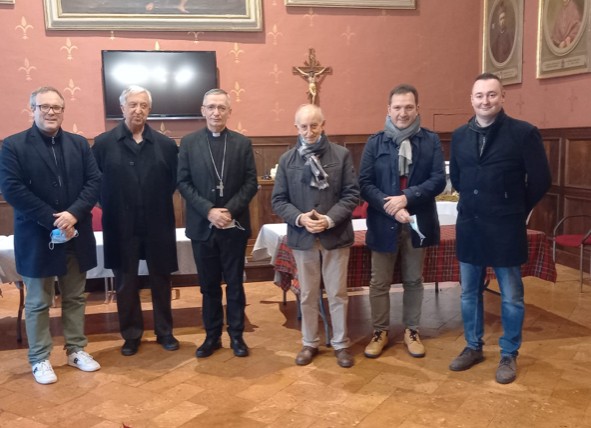 Tradizionale incontro, sabato 18 dicembre 2021, presso la Casa Vescovile di Crema tra il Vescovo di Crema Mons. Daniele Gianotti e il Movimento Cristiano lavoratori del territorio per lo scambio di auguri natalizi; “tradizionale” nella consuetudine che da anni vede il Movimento portare gli auguri al Vescovo della diocesi casa madre dell’associazione ma “diverso” nella forma: anche quest’anno come nello scorso dicembre 2020, causa la situazione sanitaria in corso dovuta al Covid 19, solo una ristretta delegazione, in rappresentanza di tutta la “rete associativa”, guidata dal presidente MCL del territorio Michele Fusari e dall’assistente ecclesiastico centrale Don Angelo Frassi ha incontrato il Vescovo Daniele abituato invece a ricevere negli anni scorsi tanti dirigenti, collaboratori e soci MCL per lo scambio di auguri.
