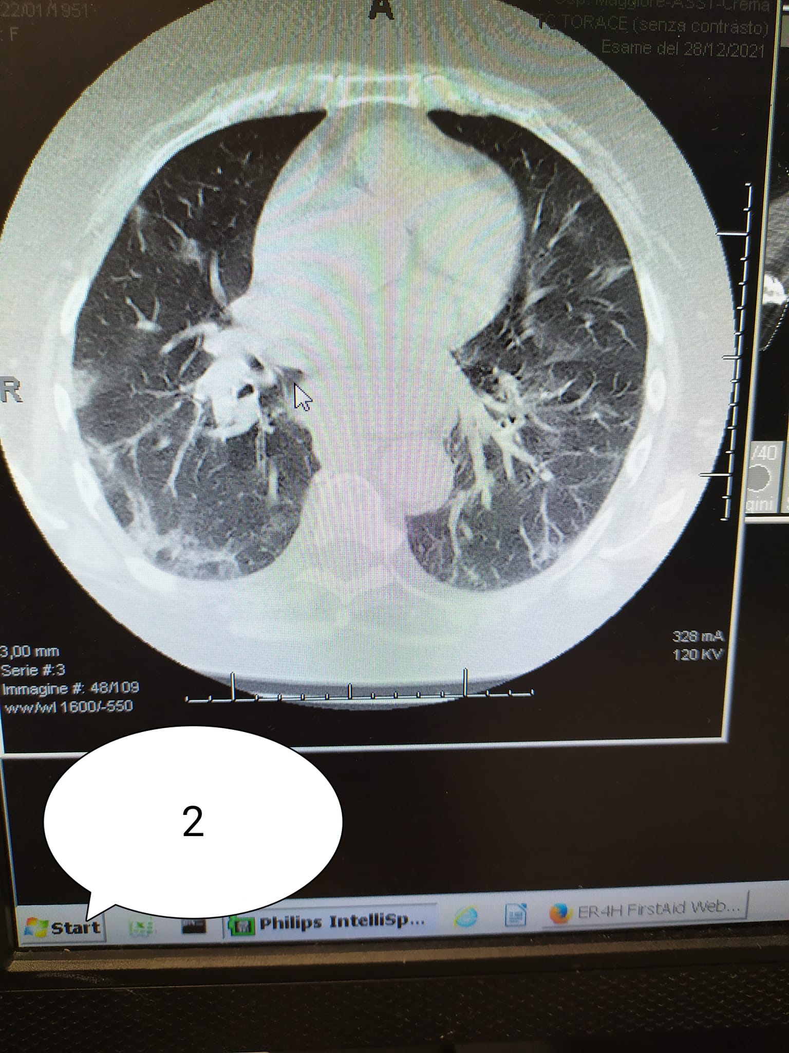 “Se in 1) e 2) il carico di malattia polmonare è elevato in 1 (circa 60%) e discreto in 2) (circa 35%). Nel soggetto 3) (fragile e con malattie importanti in anamnesi), la malattia non c’è. I primi due ricoverati e con ossigeno, il terzo a casa sua”.