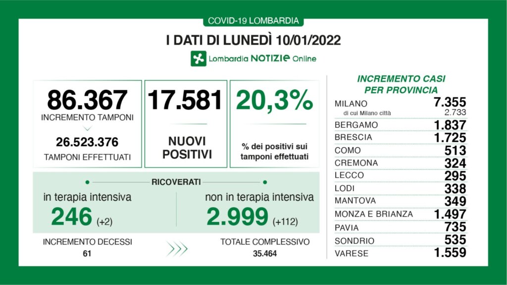 – i nuovi casi positivi: 17.581