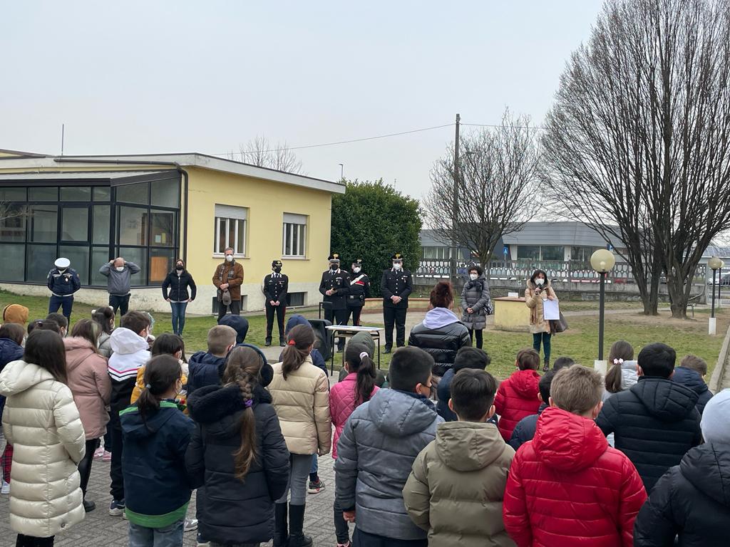 L’incontro tra personale scolastico, alunni e Carabinieri è stato organizzato e fortemente voluto dalla dirigente scolastica Maria Cristina Rabbaglio ed è stata una bellissima occasione di condivisione. Da una parte i bambini che, aiutati dalle loro insegnanti, hanno accolto i militari dell’Arma di Crema e Pandino cantando l’inno nazionale e dedicando loro due disegni e una poesia da loro composta e dall’altra il Comandante della Compagnia Carabinieri di Crema, Capitano Giovanni Meriano, il Comandante della Stazione di Pandino, Luogotenente Gerardo Giordano, e una pattuglia dell’Aliquota Radiomobile di Crema che hanno portato agli insegnanti e ai bambini il saluto di tutti i Carabinieri.