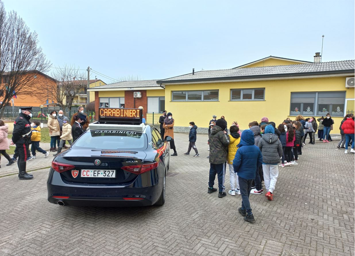 L’incontro tra personale scolastico, alunni e Carabinieri è stato organizzato e fortemente voluto dalla dirigente scolastica Maria Cristina Rabbaglio ed è stata una bellissima occasione di condivisione. Da una parte i bambini che, aiutati dalle loro insegnanti, hanno accolto i militari dell’Arma di Crema e Pandino cantando l’inno nazionale e dedicando loro due disegni e una poesia da loro composta e dall’altra il Comandante della Compagnia Carabinieri di Crema, Capitano Giovanni Meriano, il Comandante della Stazione di Pandino, Luogotenente Gerardo Giordano, e una pattuglia dell’Aliquota Radiomobile di Crema che hanno portato agli insegnanti e ai bambini il saluto di tutti i Carabinieri.