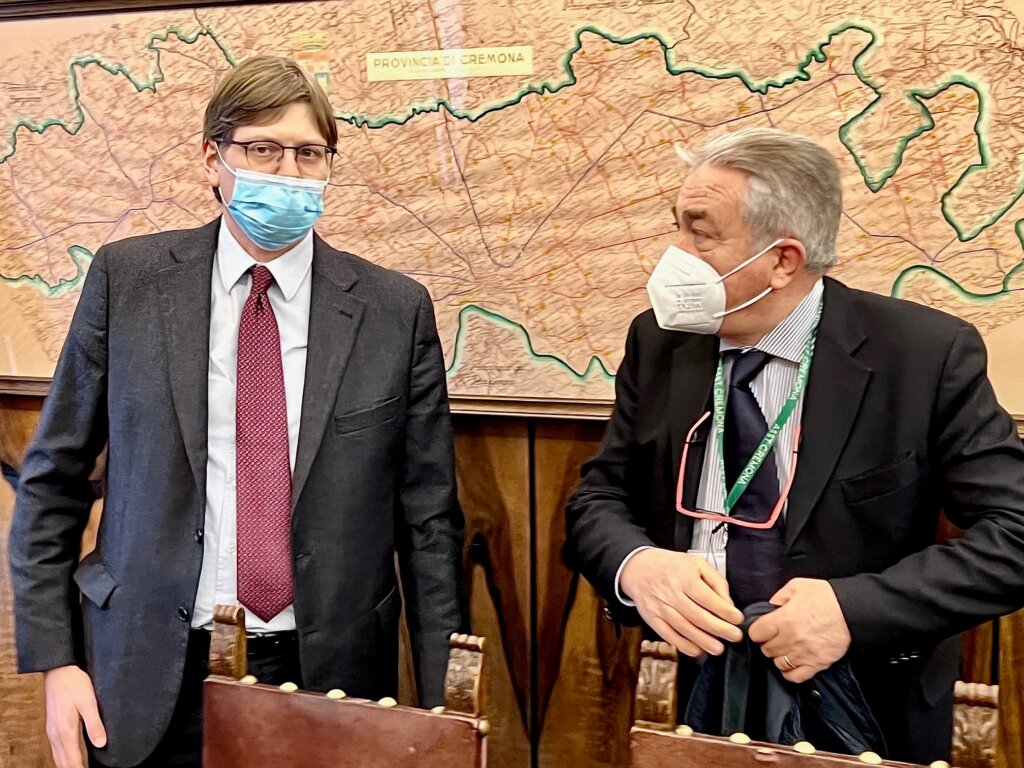 Presenti, tra gli altri, il Questore Michele Davide Sinigaglia, il presidente della Provincia Mirko Signoroni, i sindaci Gianluca Galimberti, Stefania Bonaldi, Filippo Bongiovanni; rappresentanti della sanità locale: Salvatore Mannino per Ats Valpadana e Rosario Canino per Asst; i direttori delle Caritas di Cremona e Crema.
