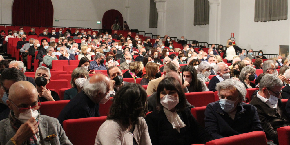A metà concerto, fuori programma, con luci accese in sala per gli auguri di compleanno a Umberto Cabini, socio fondatore della Fondazione San Domenico e già presidente della stessa, al quale dal palco, Margherita Zanin dedica una dei brani che più caratterizzano il repertorio di Lucio Dalla, 4 marzo 1943.