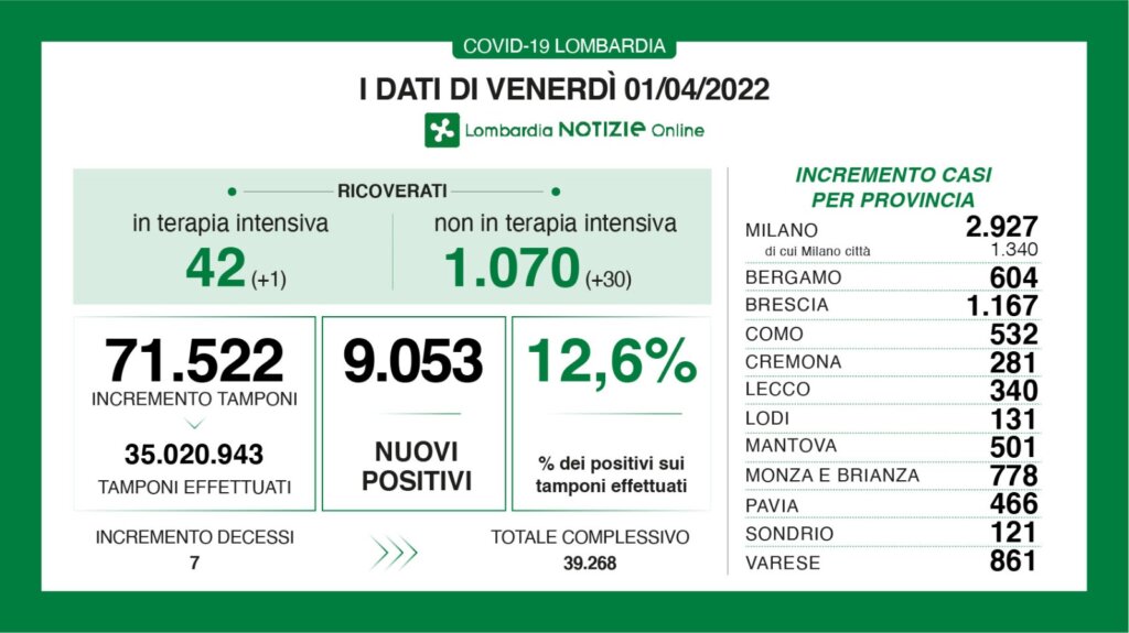 – i tamponi effettuati: 71.522, totale complessivo: 35.020.943