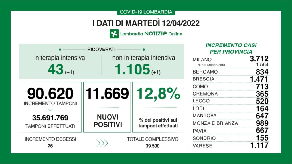 – i tamponi effettuati: 90.620, totale complessivo: 35.691.769
